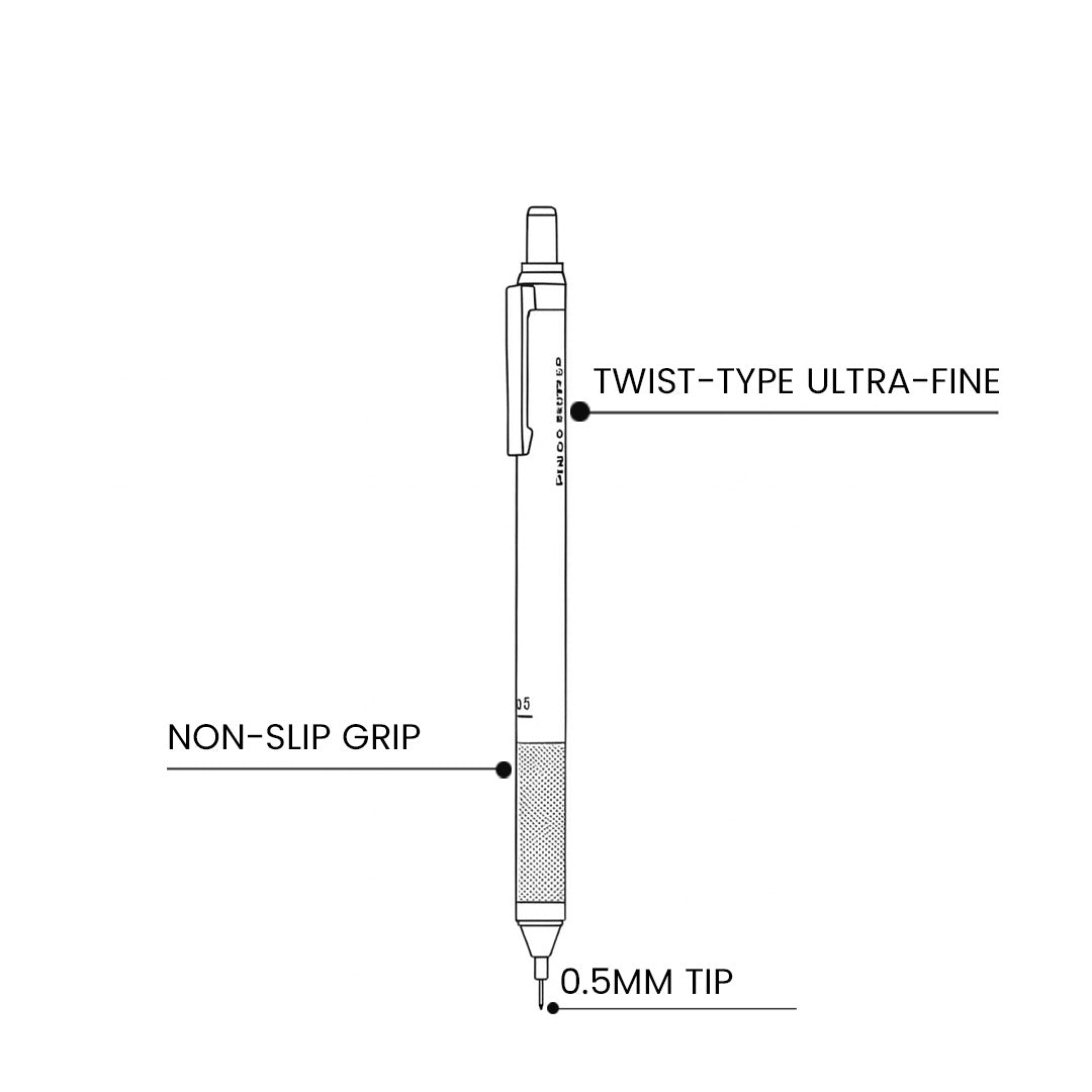 - The body is designed with a low center of gravity and a non-slip grip for comfortable writing and drafting.