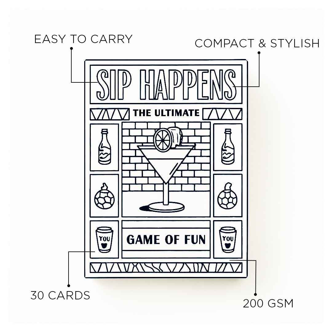 - Compact, stylish, and easy to carry sip happens is your go-to deck for spontaneous fun anywhere, anytime.