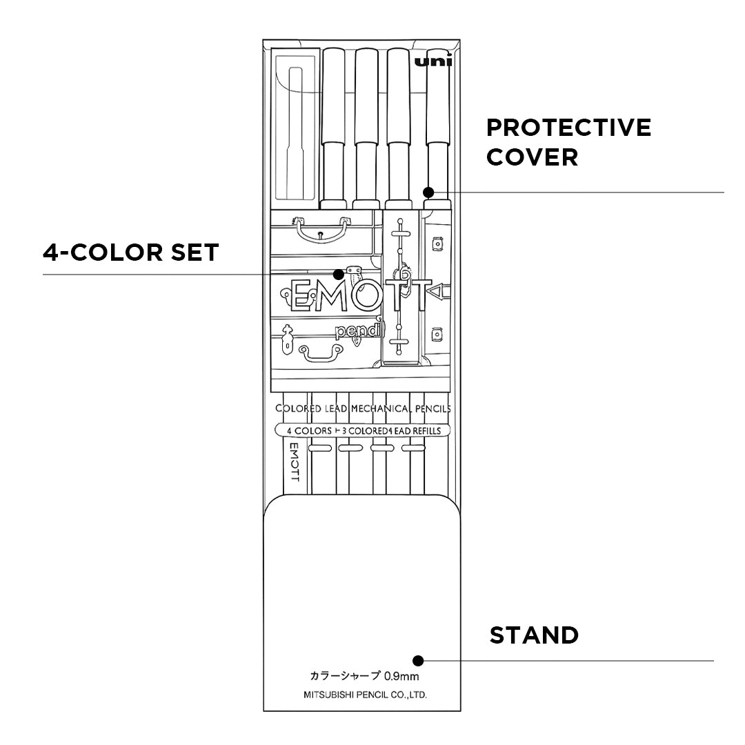- The uni emott 0.9 mechanical pencil combines minimalist design with reliable performance for a smooth and comfortable writing experience.