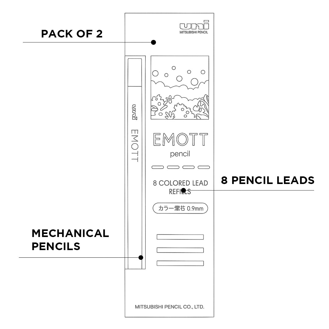 - The uni 0.9mm emott mechanical pencil lead is designed to deliver exceptional precision, strength, and smoothness for a flawless writing and drawing experience.