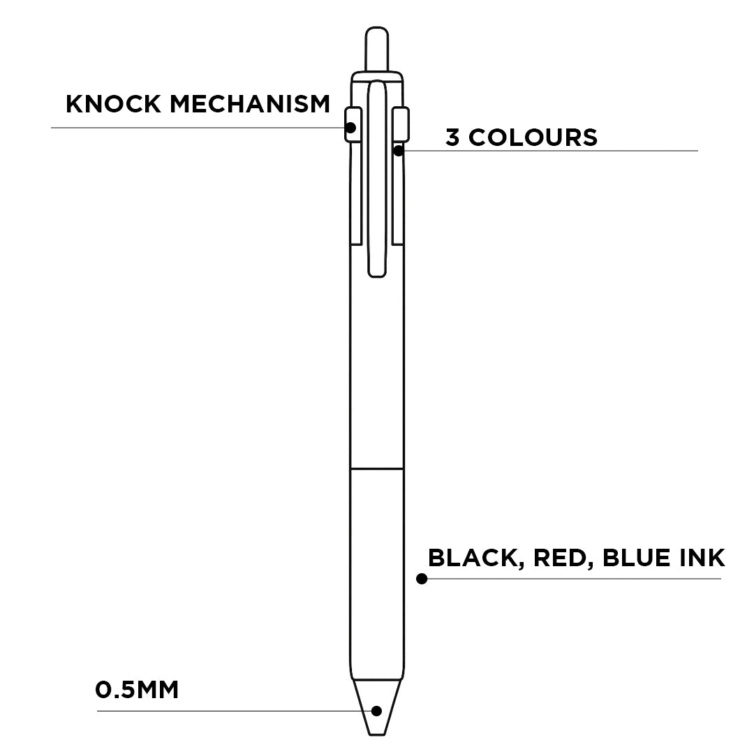 - Featuring three ink colors—black, blue, and red—it’s perfect for organized note-taking and color-coded writing.