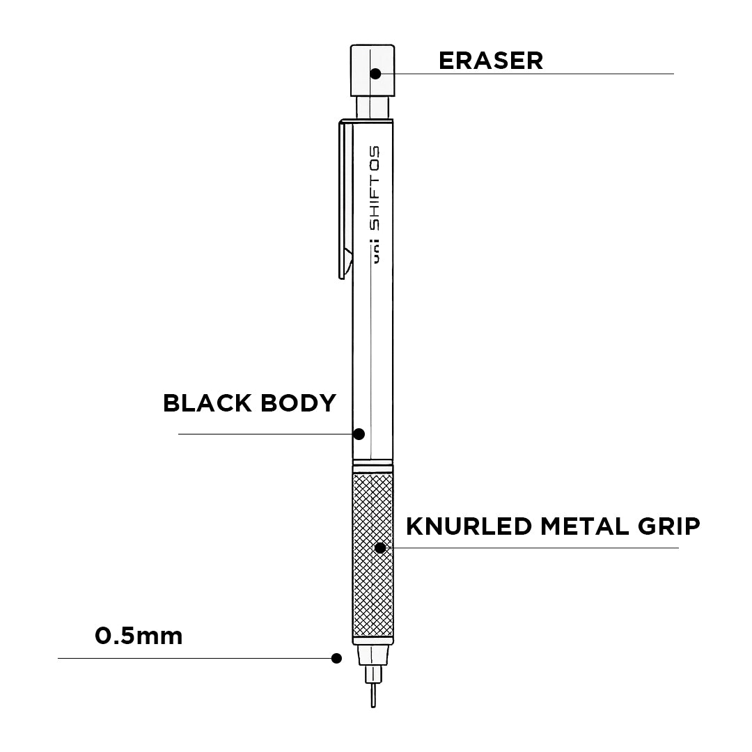 - With its sleek black metal body, balanced weight, and comfortable grip, the uni shift offers a professional feel and exceptional performance for students, architects, and creative professionals alike.