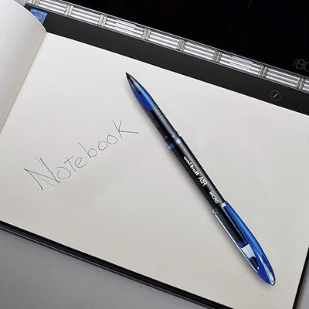 - The uni-ball Air Micro rollerball pen writes with the look of a fountain pen but without the leaks.