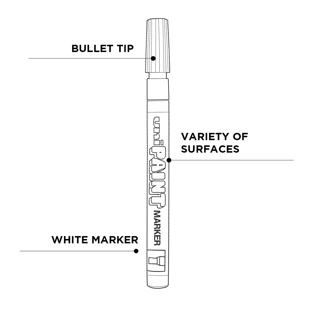 - The uni-ball white paint marker is perfect for bold, opaque marking on almost any surface.