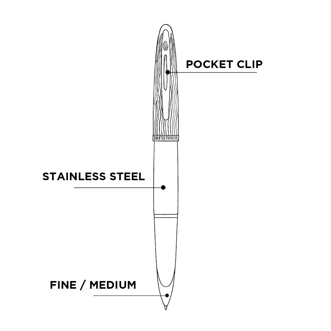 - The pen is fitted with an exquisite 18k gold nib, engineered for a smooth and effortless writing experience, available in fine and medium sizes.