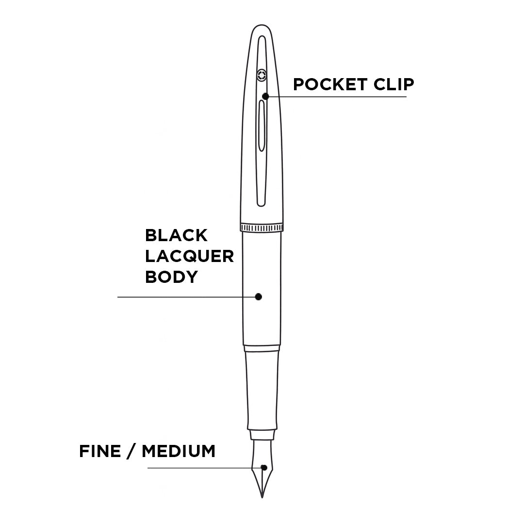 - Equipped with a precisely engineered 18k gold nib, this fountain pen is available in fine and medium nib sizes, offering smooth, consistent ink flow and an effortlessly elegant writing experience.