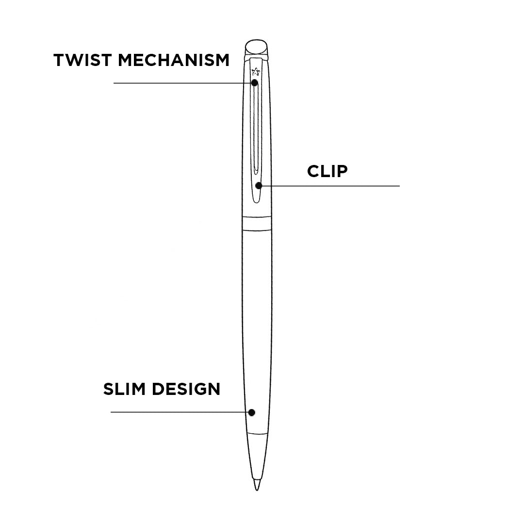 - The pen operates with a smooth twist mechanism, ensuring effortless extension and retraction of the refill.