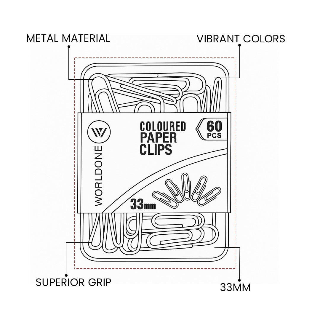 - The Worldone 33mm Multicolor Paperclip is a vibrant and practical solution for organizing documents, notes, and files.