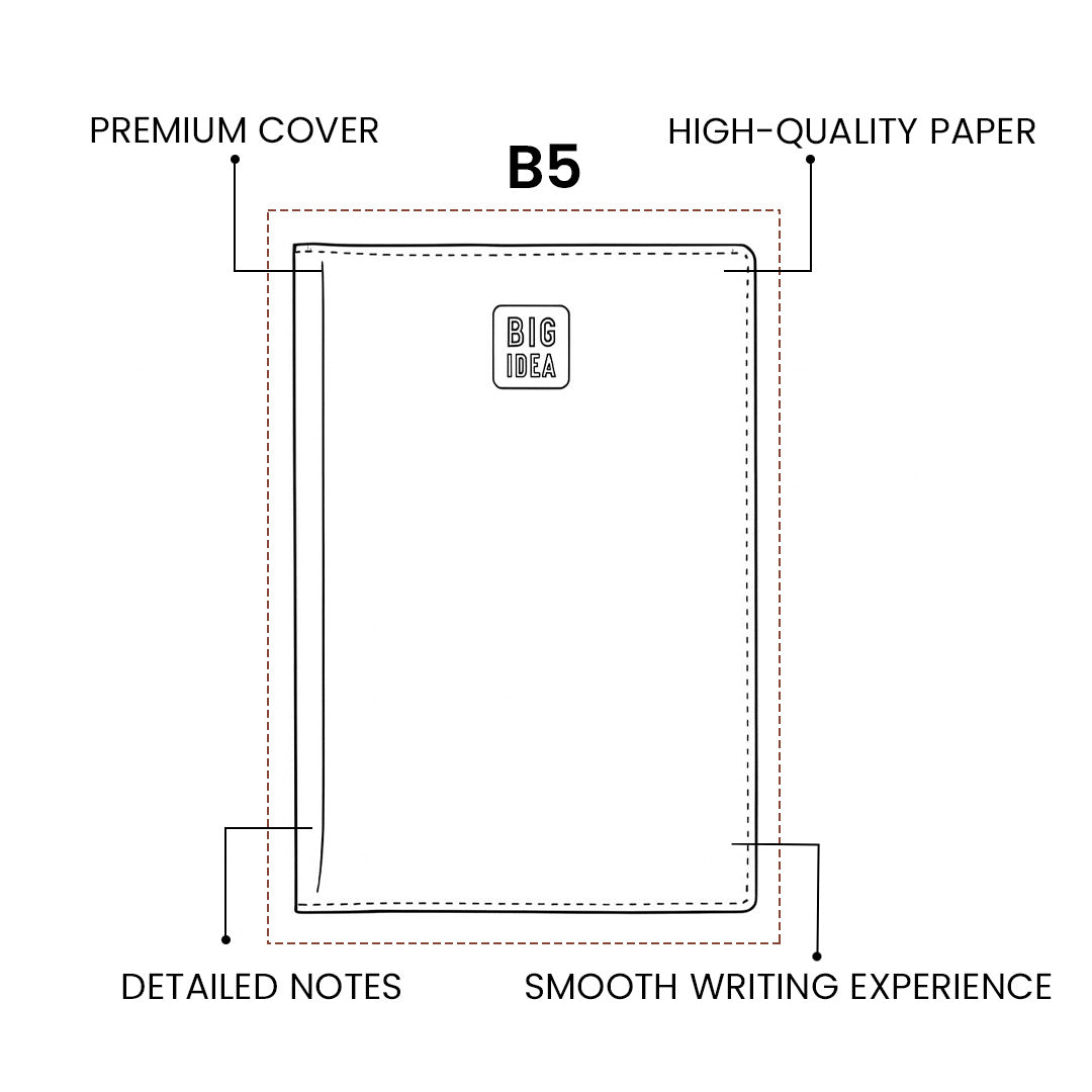 - With its spacious B5 size, this notebook offers ample room for detailed notes, sketches, or brainstorming sessions.