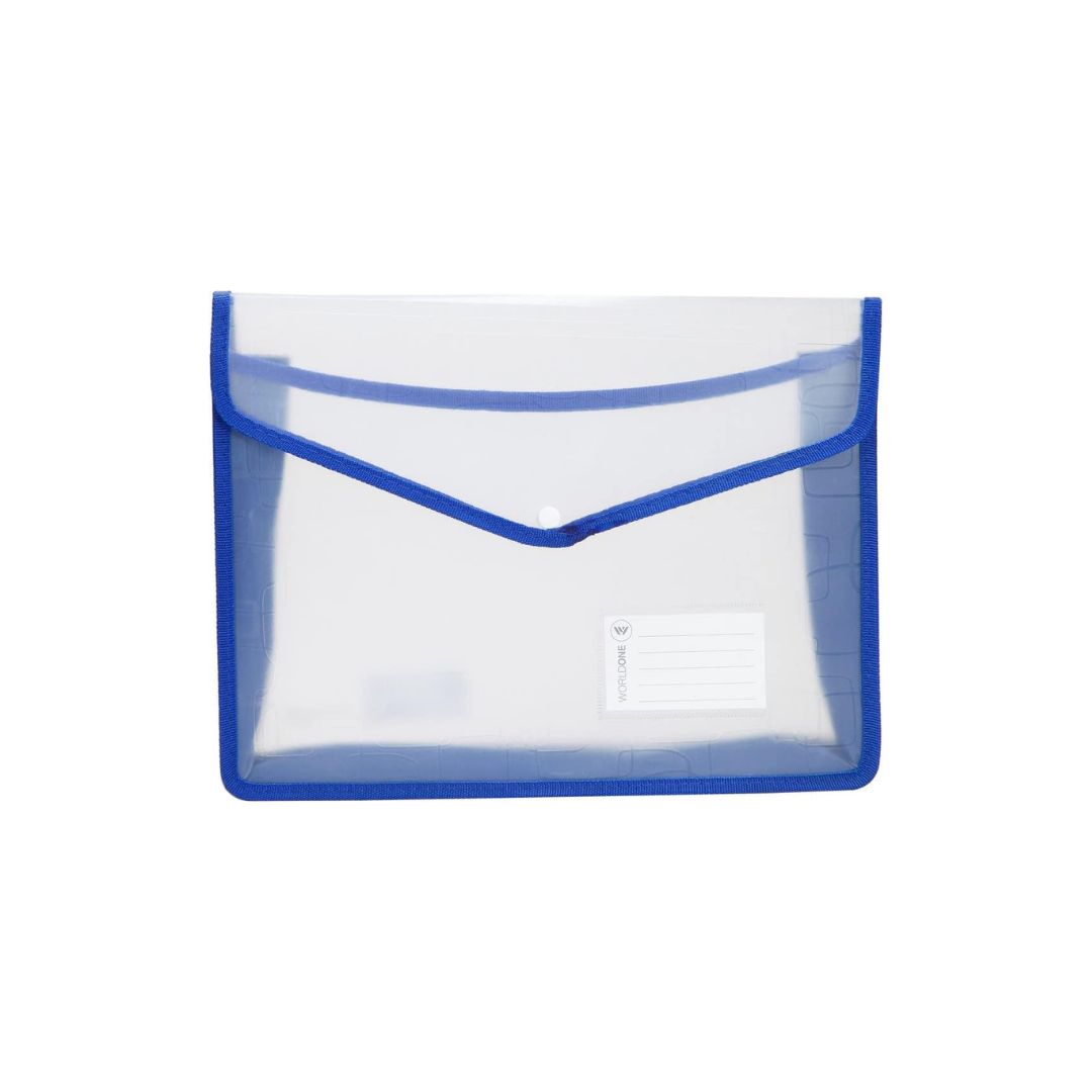 Worldone Flexi Document Case Button Folder Transparent Blue - Pack of 2