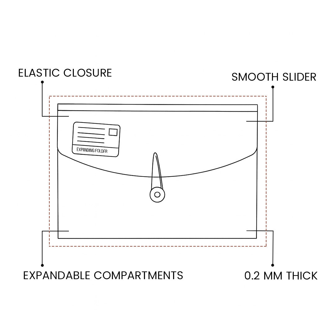 - The durable polypropylene (PP) material ensures long-lasting use, while the elastic band closure keeps the contents safe during travel or storage.