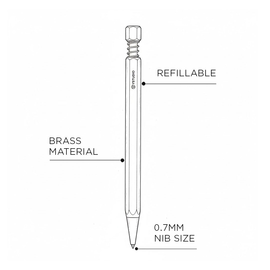 - Made with a solid brass body, this pen offers exceptional durability along with a premium, minimalist aesthetic that develops a unique patina over time.