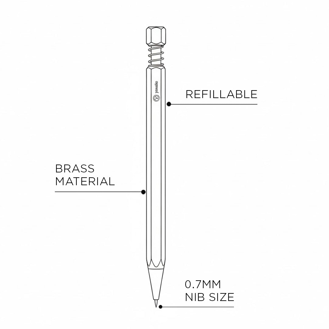 - Made with a solid brass body finished in elegant black, this pen offers excellent durability along with a refined, premium look that ages beautifully over time.