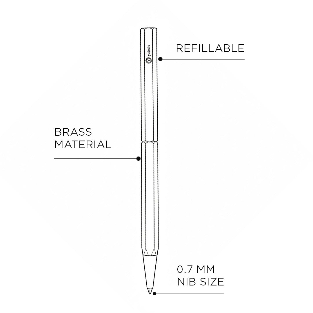 - Its minimal and timeless design reflects ystudio’s classic aesthetic, while the brass naturally develops a distinct patina over time, making each pen unique.