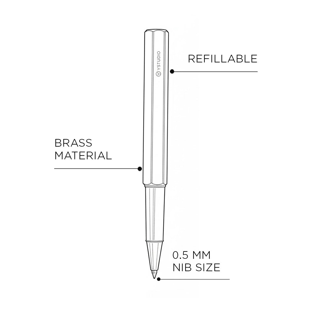 - The ystudio classic revolve white rollerball Pen is a timeless and elegant writing instrument crafted from solid brass and finished in a clean, sophisticated white coating.