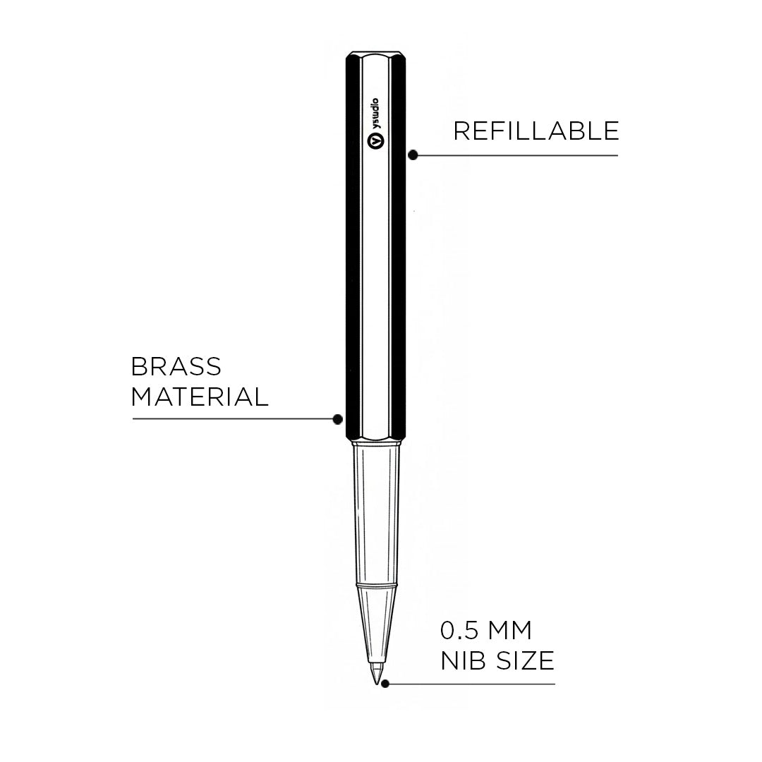 - The ystudio classic revolve black rollerball Pen is a refined and durable writing instrument crafted from solid brass with a sleek black finish.