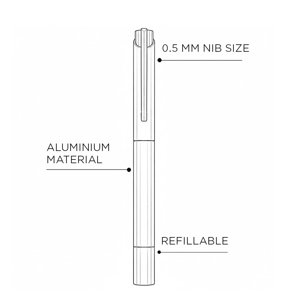 - Crafted with a durable aluminium body, the pen is lightweight yet sturdy, offering a comfortable grip for everyday writing.