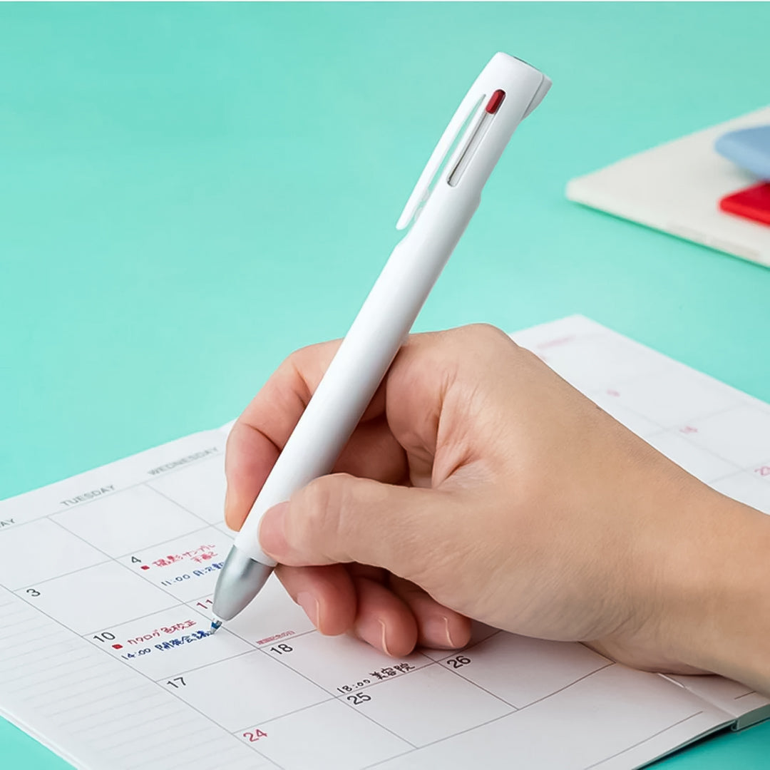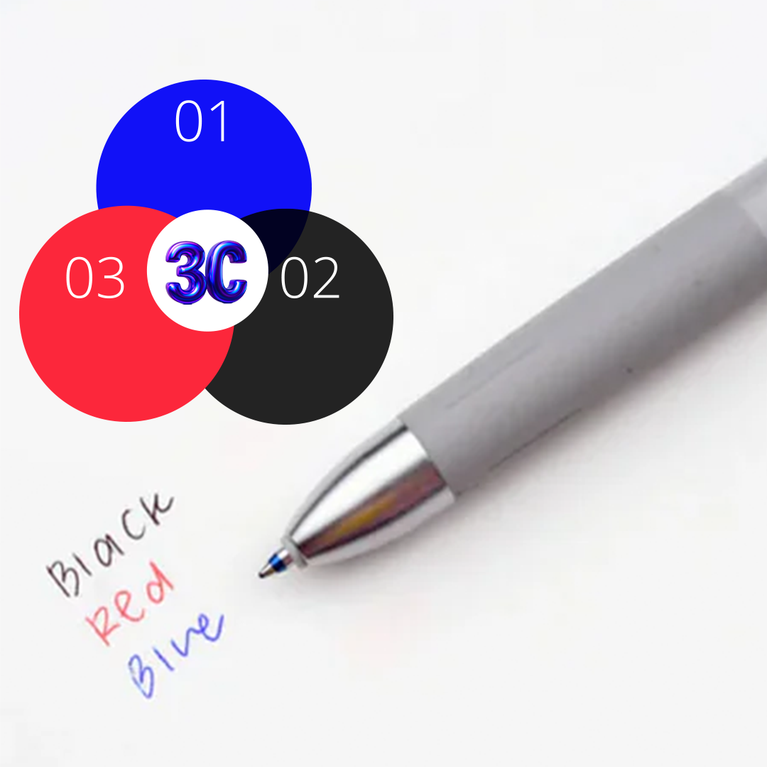 - Three colors of smooth and vibrant emulsion ballpoint ink. Extra-large slide button for the black ink component, which is the most commonly used color.