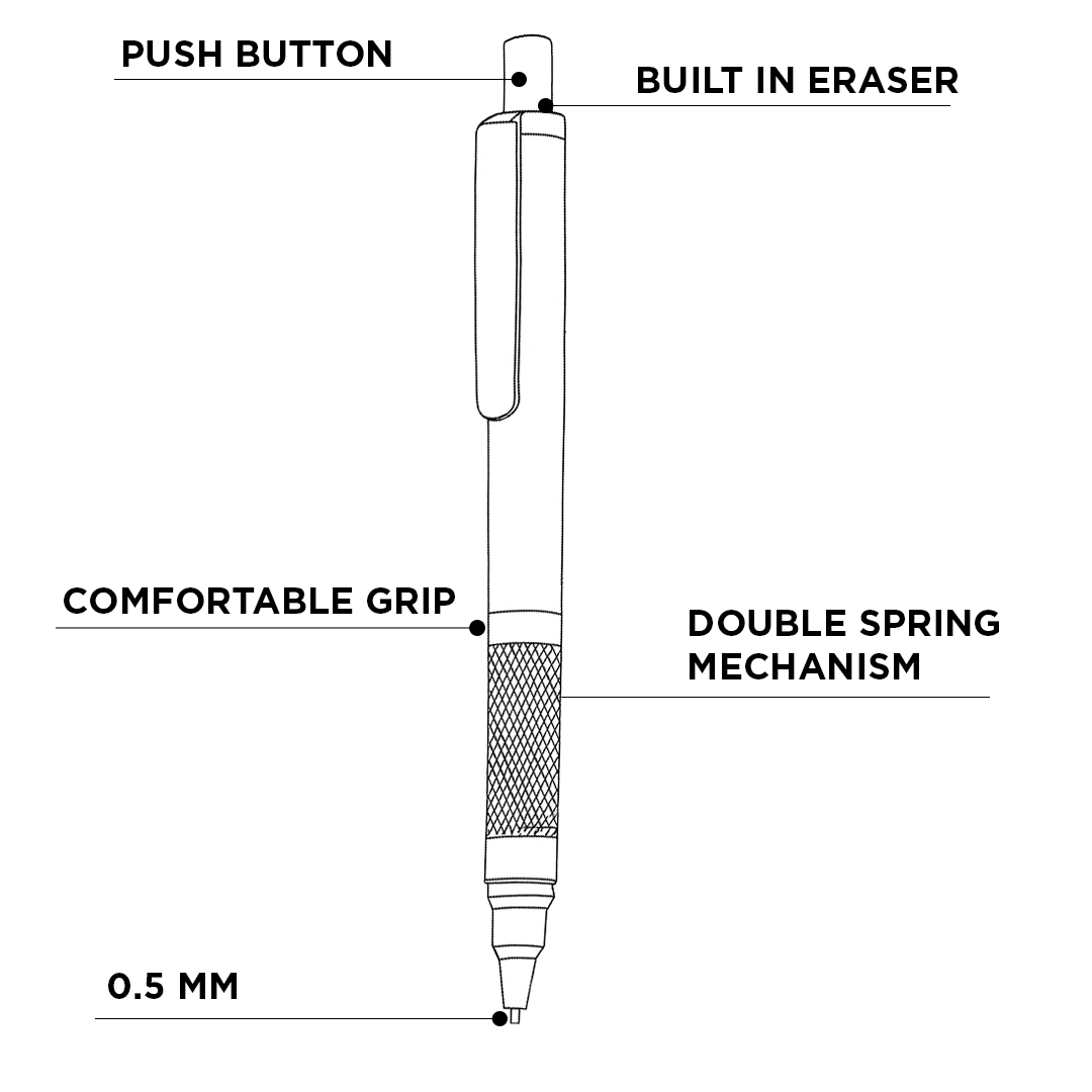 - First, a spring in the barrel of the pencil lets the lead slide back into the pencil instead of breaking if too much vertical pressure is applied.