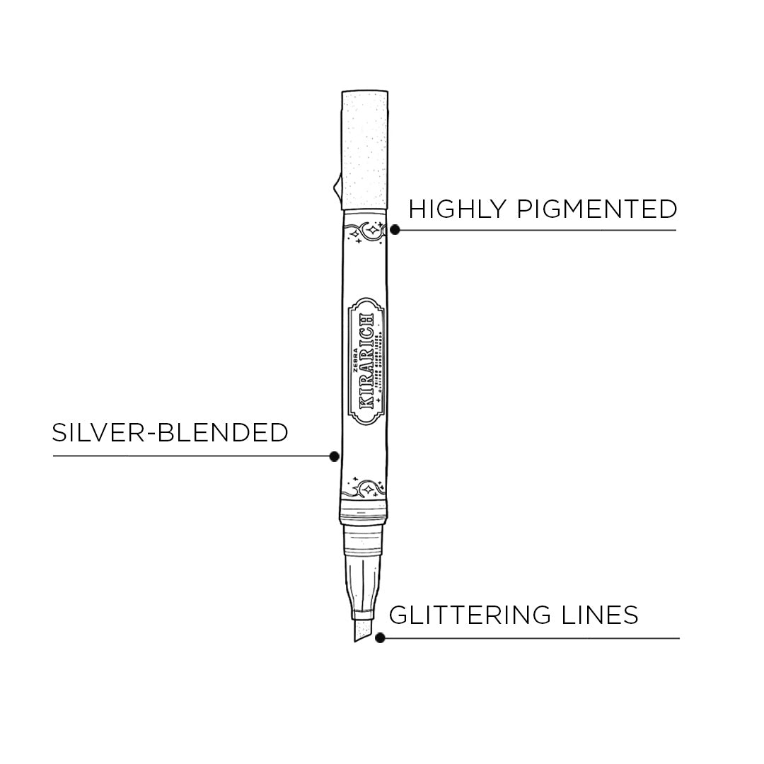 - Silver-blended marker with glittering lines(Lame with silver vapour deposited on finely crushed glass particles is mixed with ink)
