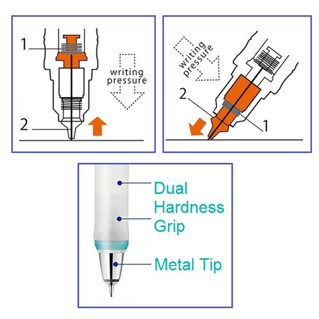 - First, a spring in the barrel of the pencil lets the lead slide back into the pencil instead of breaking if too much vertical pressure is applied.