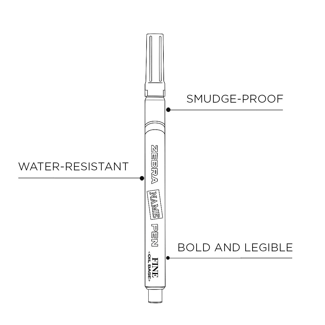 - The zebra name marker pen is designed for clear, long-lasting labeling on a variety of surfaces.